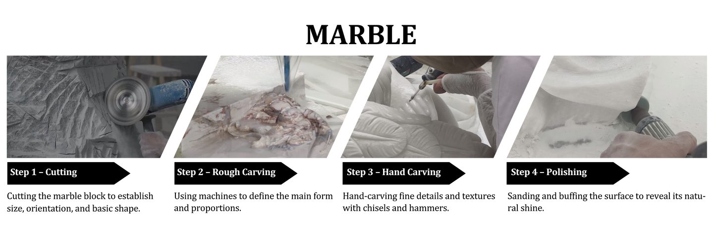 Check out how designs become reality in Check out how designs become reality in Stainless Steel, Marble, Bronze, and Fiberglass.